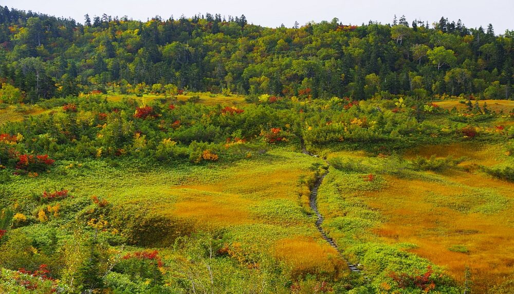 【標高2,000mヒュッテ小屋跡地】針広混交林と紅葉の山
