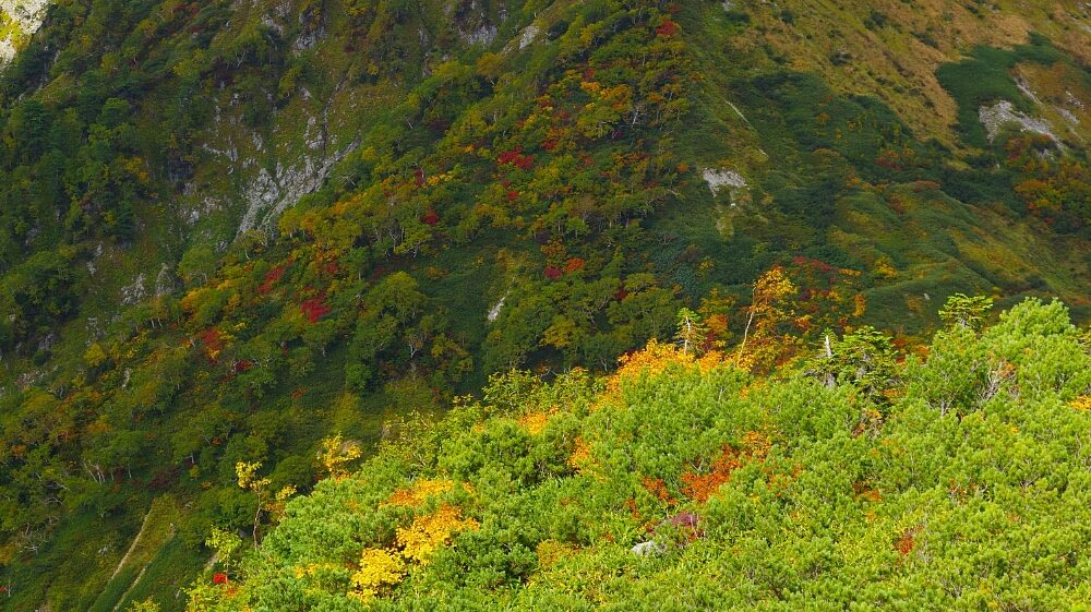 【標高2,300m天狗平】アルペンルート沿いを彩るミネカエデ(黄色)とウラジロナナカマド(赤色)