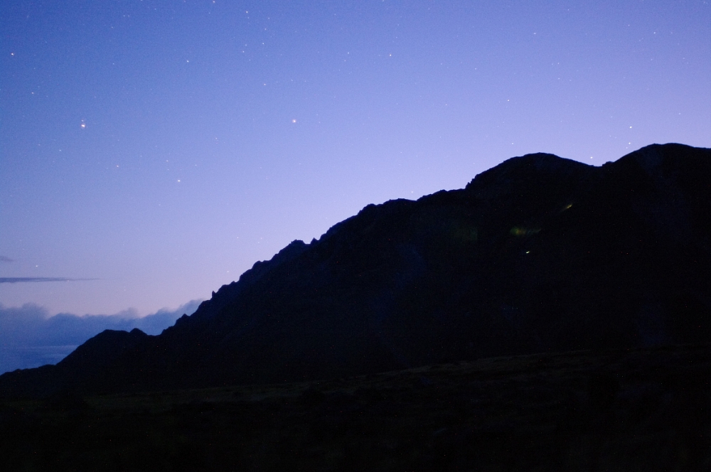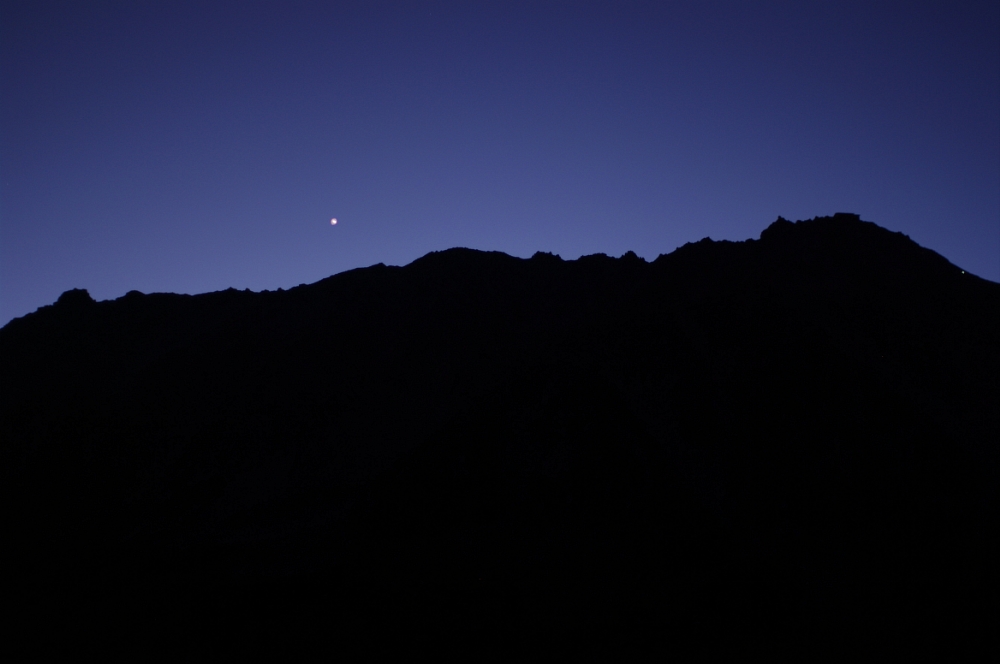 剱御前の背景にある剣岳。星数も少なくなり朝をむかえました。