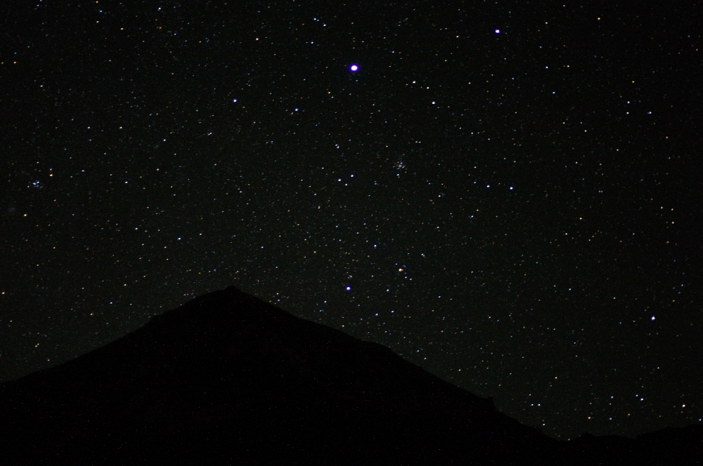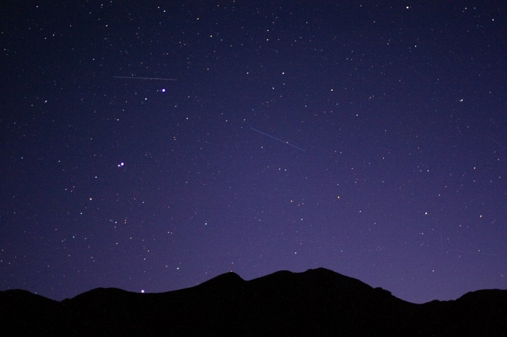 浄土山の上方にシリウスが輝き、オリオン座も上っ