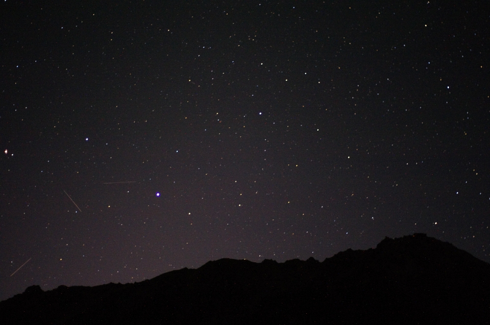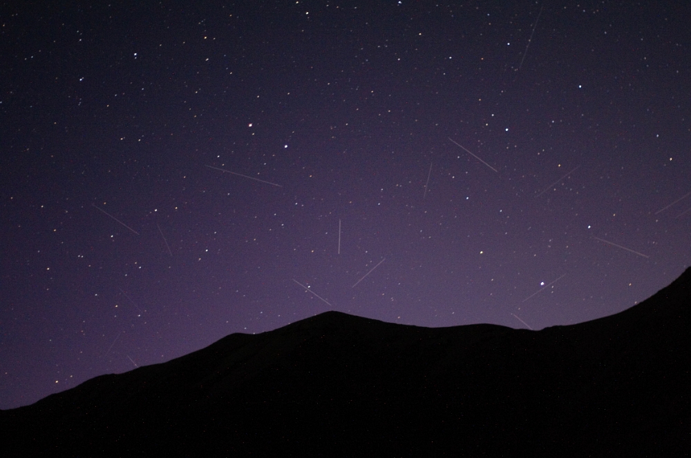 真砂岳上空の人工衛星群。こんなにもたくさん“飛んで”いるのですね。
