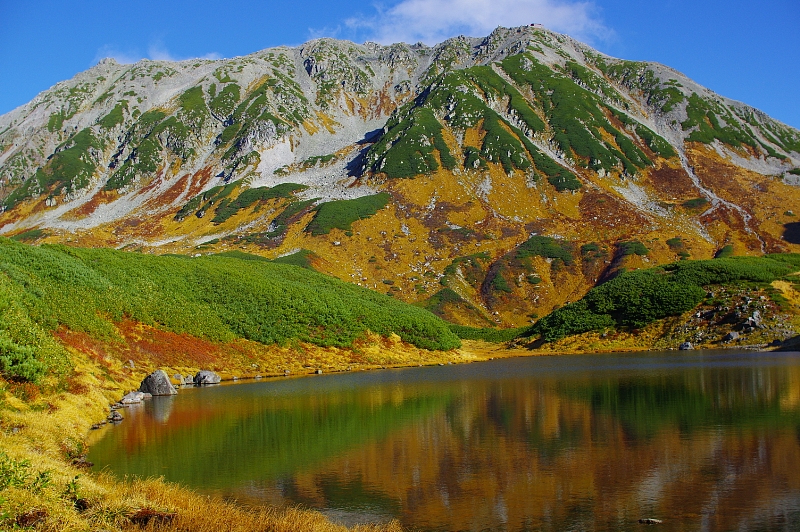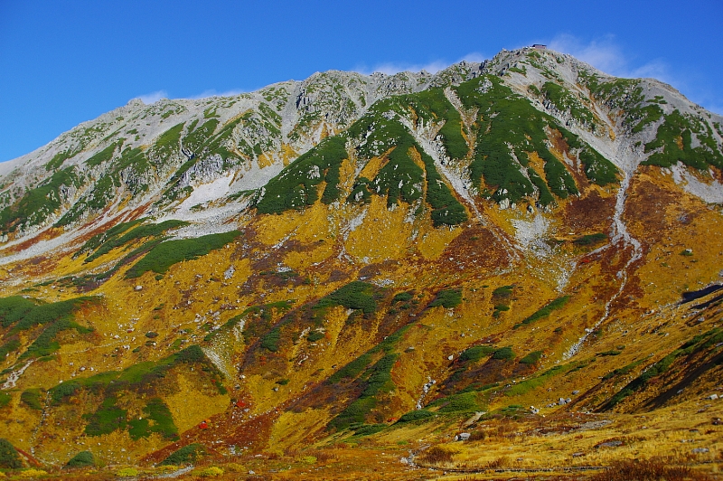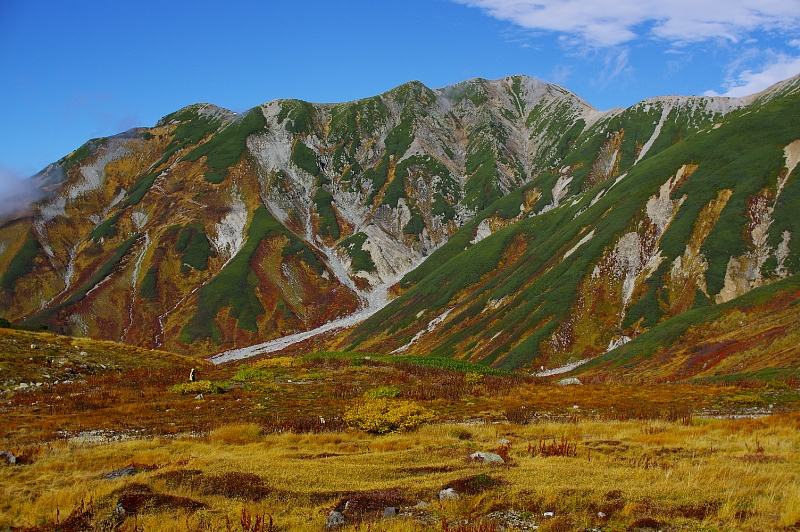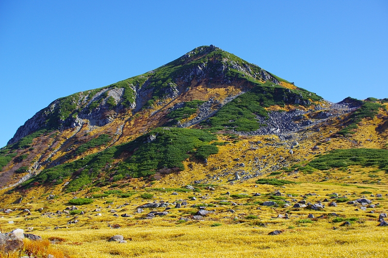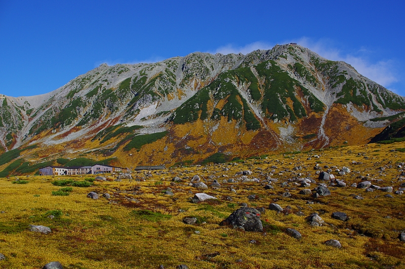 秋色の室堂園地。室堂山荘横から奥大日岳方向を望む。