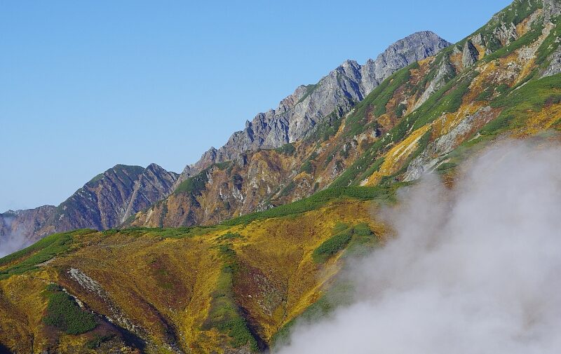 ノコギリ歯のような剱岳の稜線もクッキリと遠望できました。