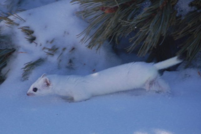 閉山直前の冬毛バージョン①(H29,11,5) 一度は見てみたい、憧れのホワイトオコジョ。