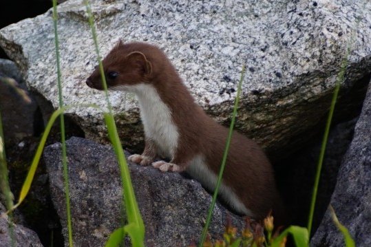 毛並みが美しいオコジョ。首の長さがイタチ科っぽいですね。(H29,8,13)
