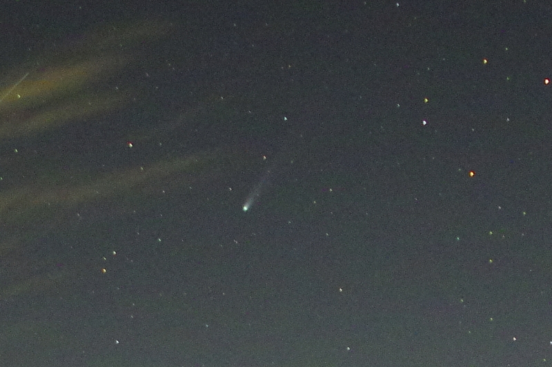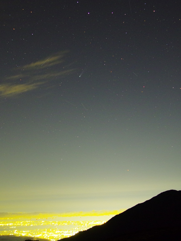 大日岳の斜め上。西の空(富山平野上空)のレモン彗星