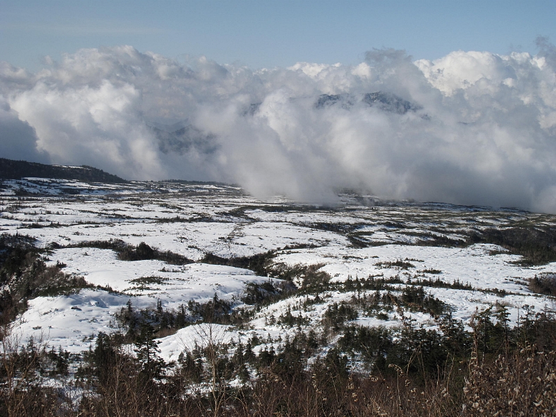 弥陀ケ原に押し寄せる雲塊。下界は曇り空でしたが、標高1,900m以上は快晴でした。