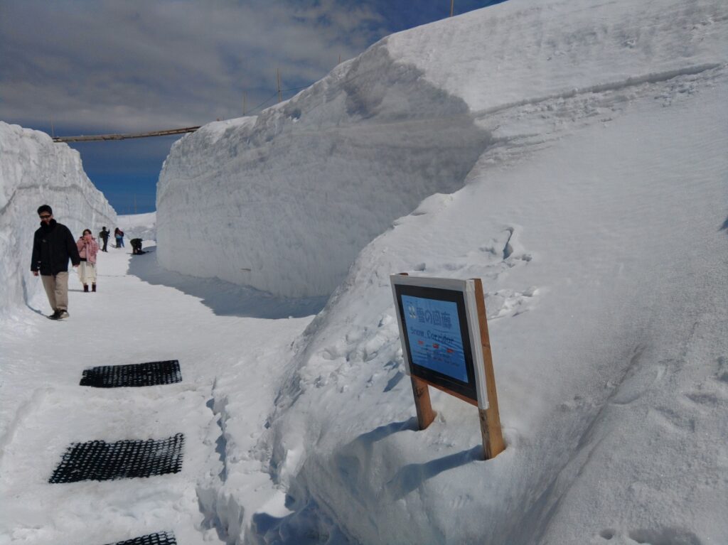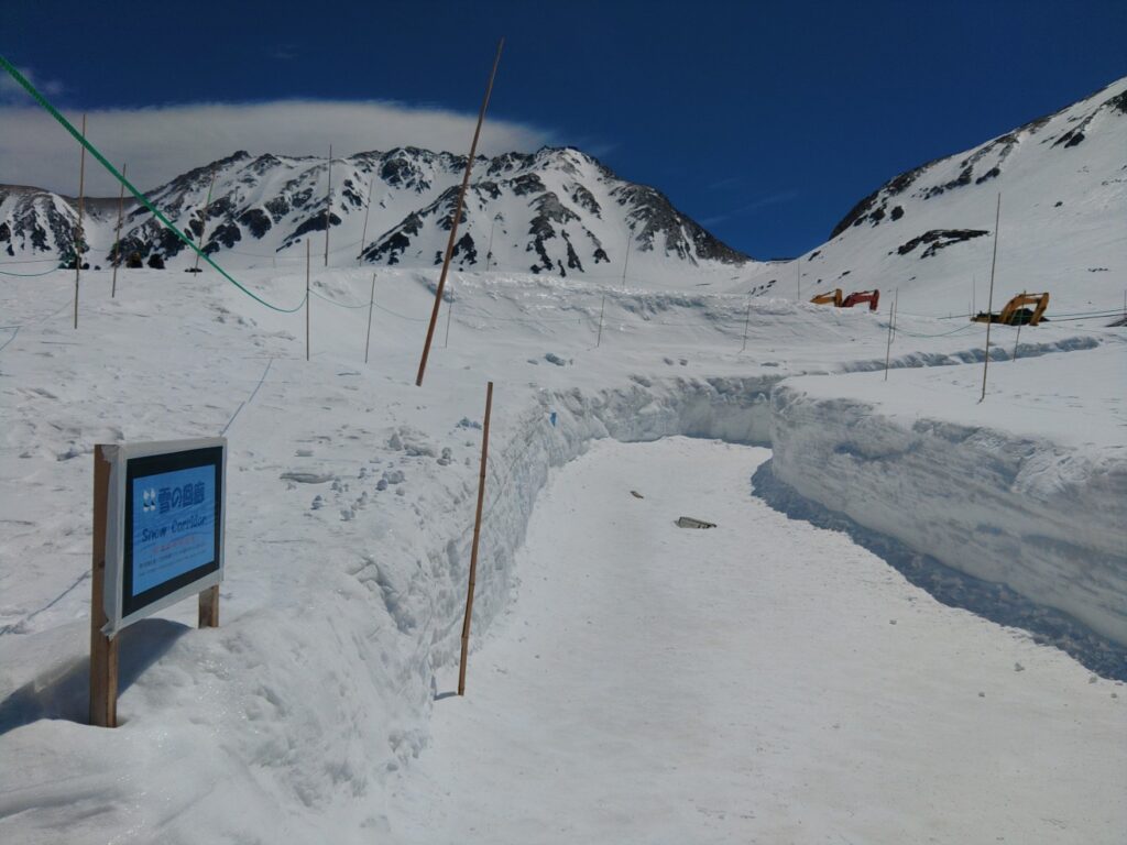 バスターミナル屋上から立山自然保護センターへ向かう雪の回廊も楽しめます。(積雪の高さの最もたい所は、4月22日時点で6m30㎝)