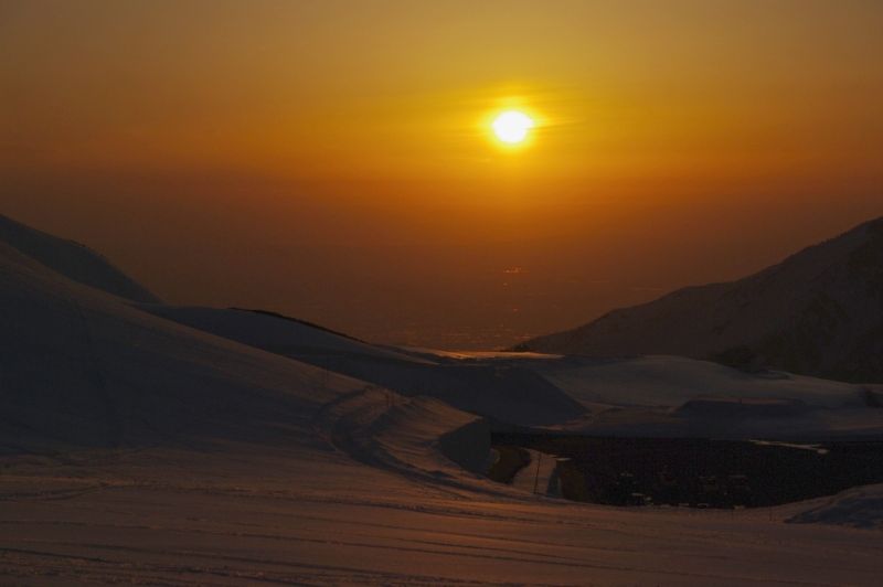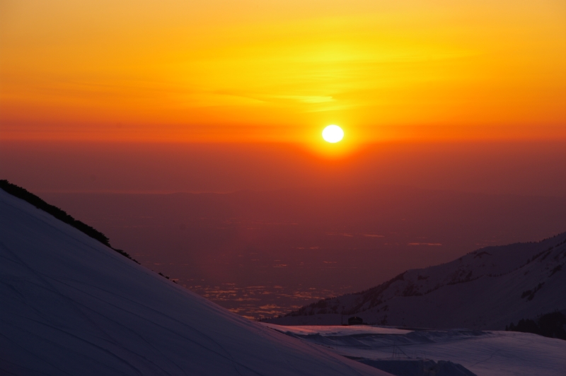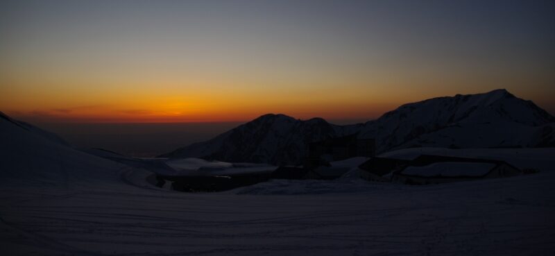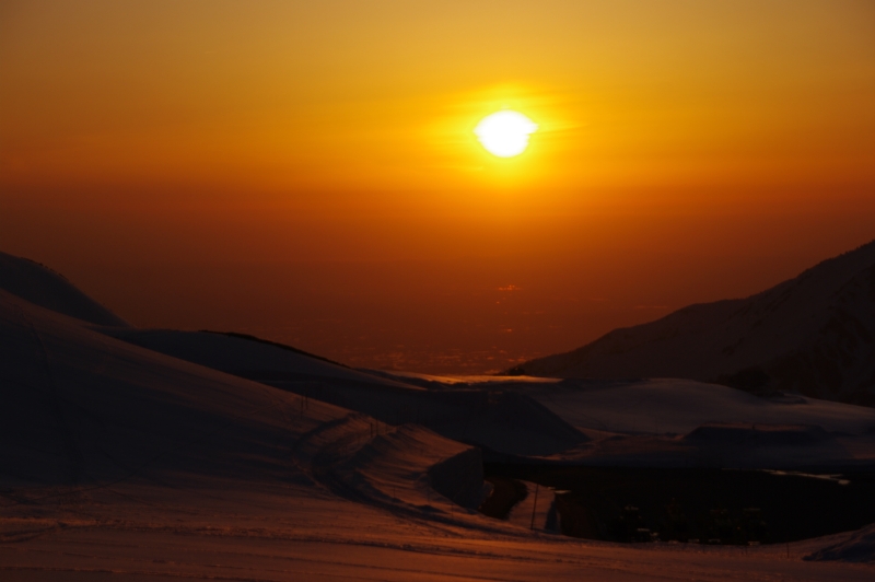 夕日が沈みきりました。奥大日~大日岳の向こうに夕陽が残っています。