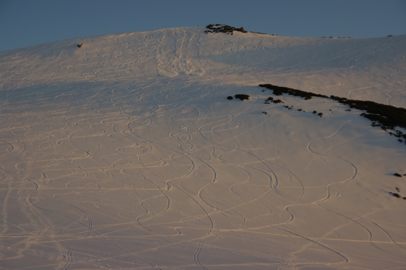 室堂山付近のスキーヤー・スノーボーダーのシュプール。まだまだ、滑られます!