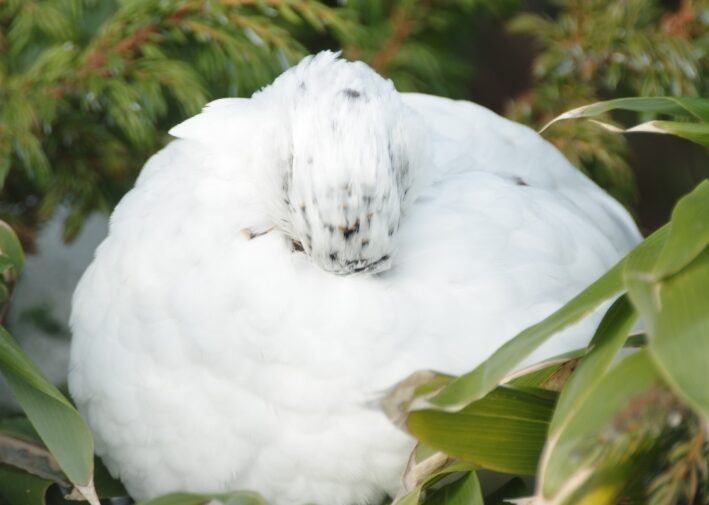⑤-4 R8,4,25室堂山荘近く、羽根付け根の毛づくろいをしているツガイ雌。※職員撮影