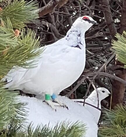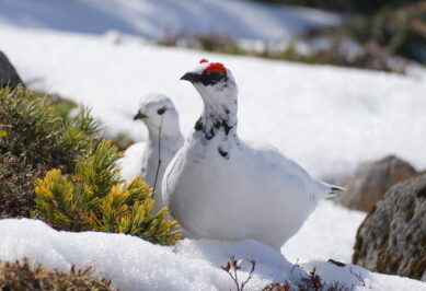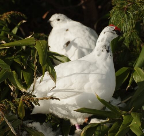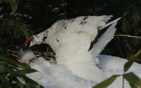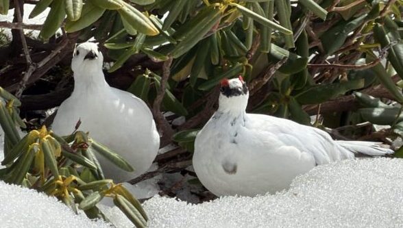 ⑤-8 R8,4,25室堂山荘近く、求愛ダンス(ディスプレイ)を始めたツガイ雄。※職員撮影