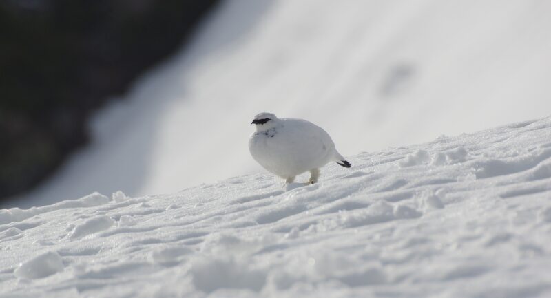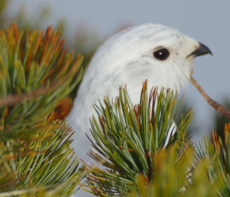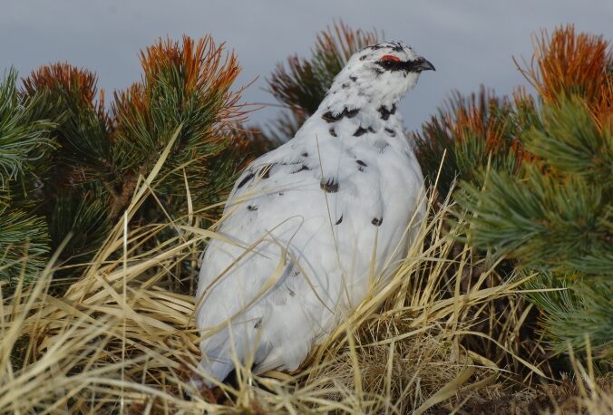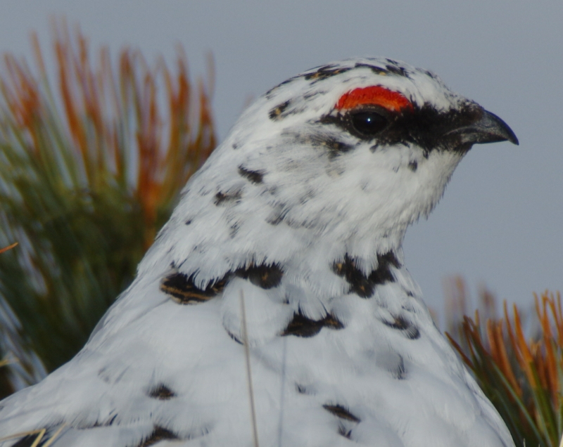 上記オスの拡大写真。この場所は、ライチョウにとって人気の縄張りポイント。毎年オス達のバトルが激しい所です。