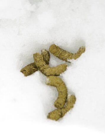 ライチョウが一晩、雪穴(人の足跡穴)で過ごしたのか、ペレット状の“ため糞”がありました。