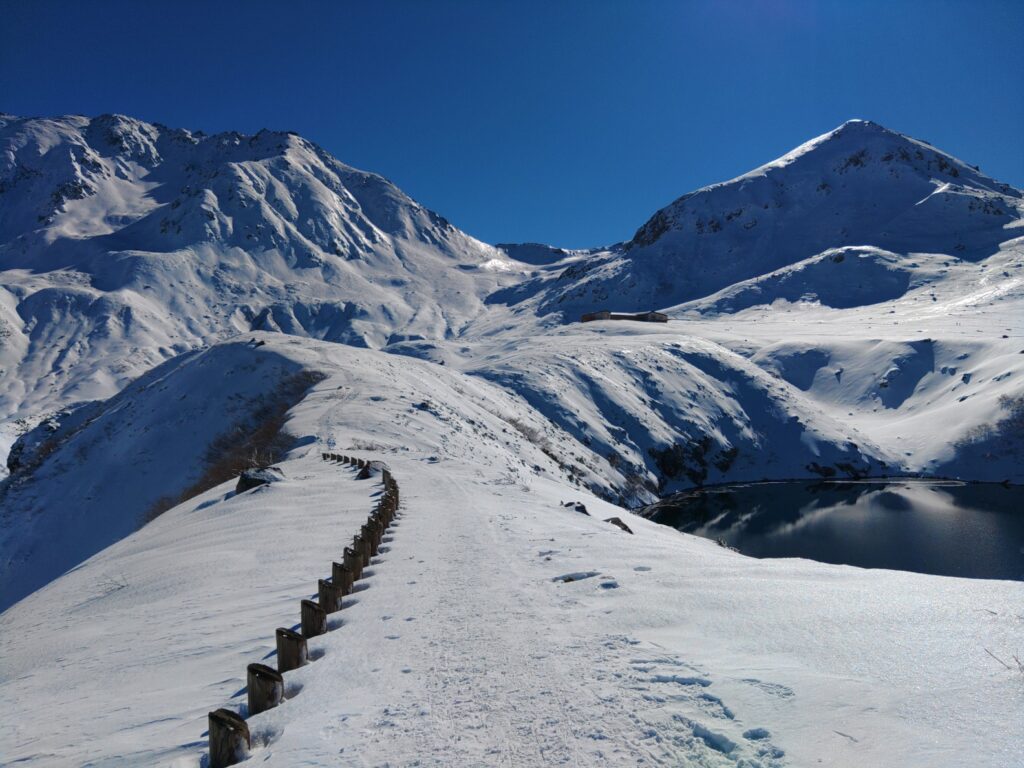 地吹雪が強くなってくると、一瞬、何も見えなくなります。お気をつけて!