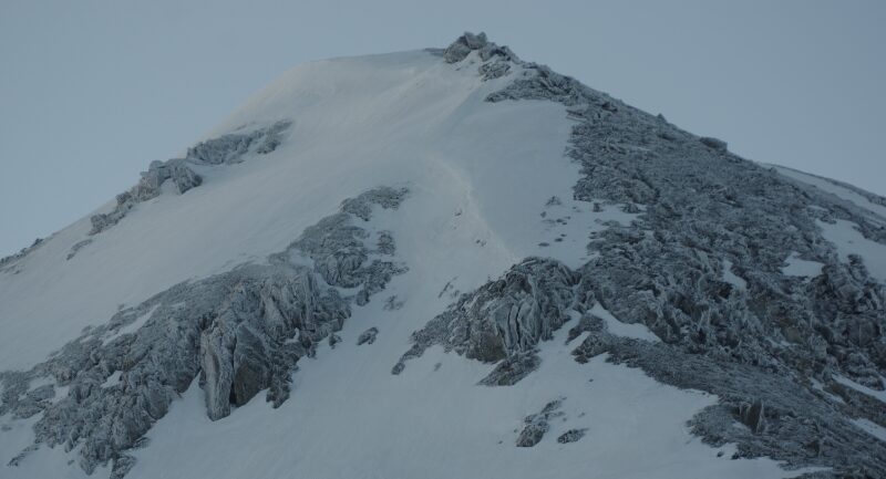 凍り付いている浄土山の山頂