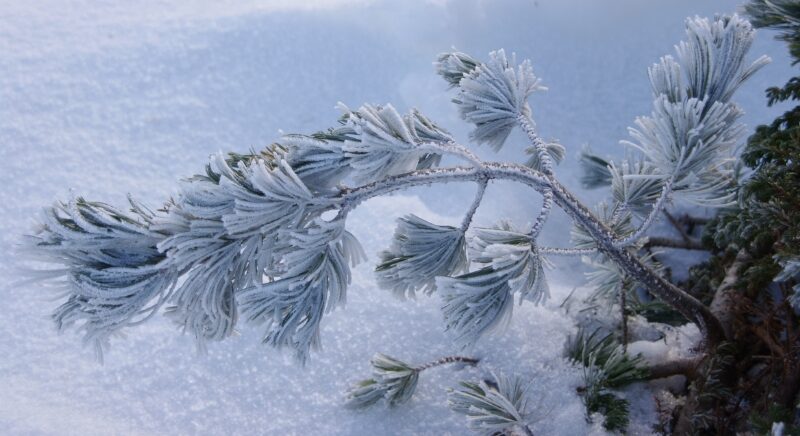 ハイマツもすっかりと凍り付いていました。